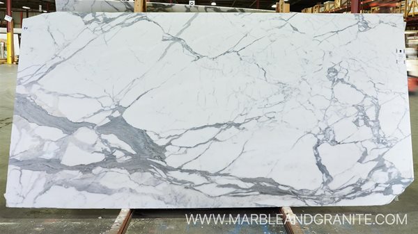 Calacatta Belgia is more readily available. Some just call it “Calacatta” or “Calacatta Carrara.” From Italy, it has a white background with heavy and wide grey veining.